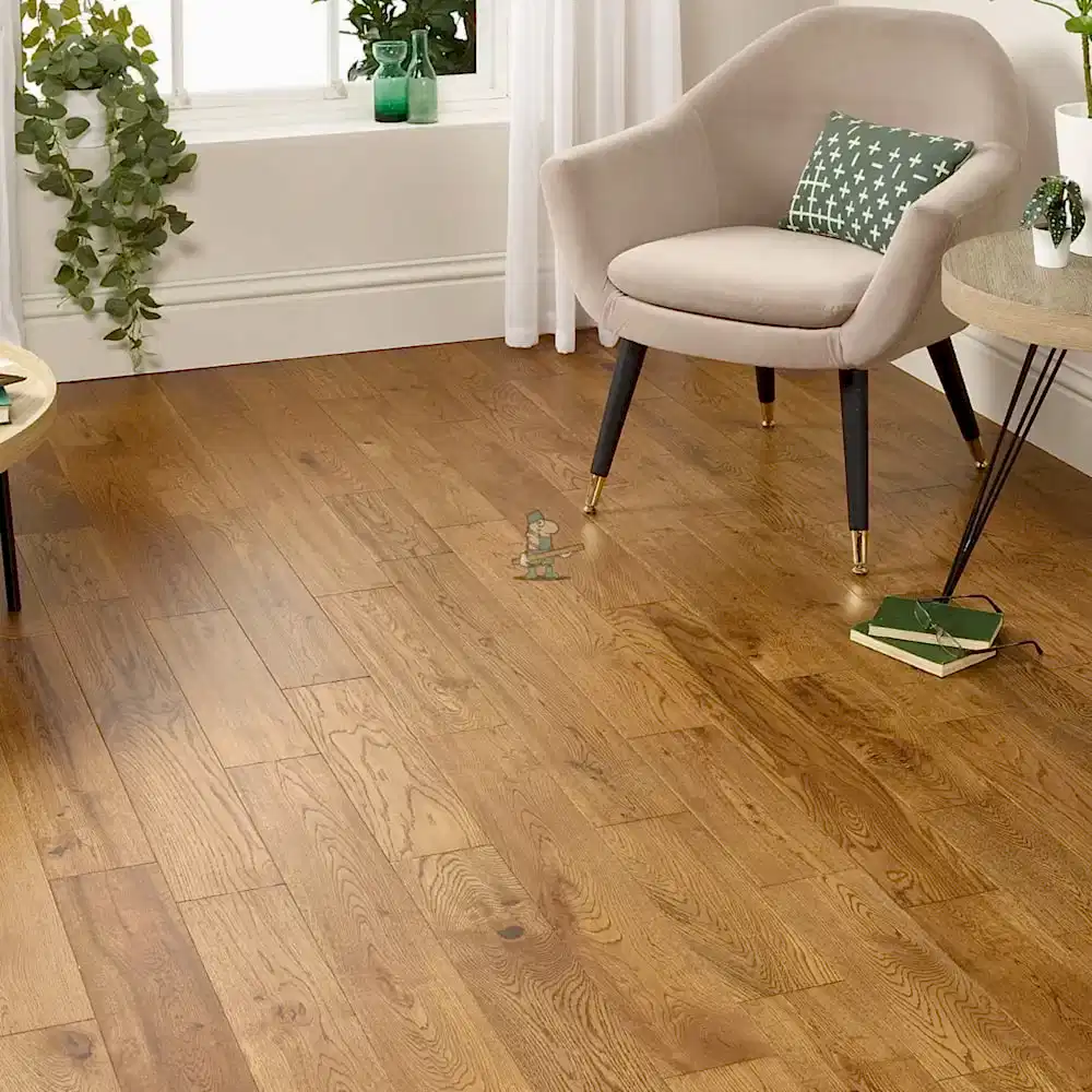 This golden oak is my favourite; the quality of solid wood planks is worth the price. The installation date we had agreed on was changed, but they still did a great job.