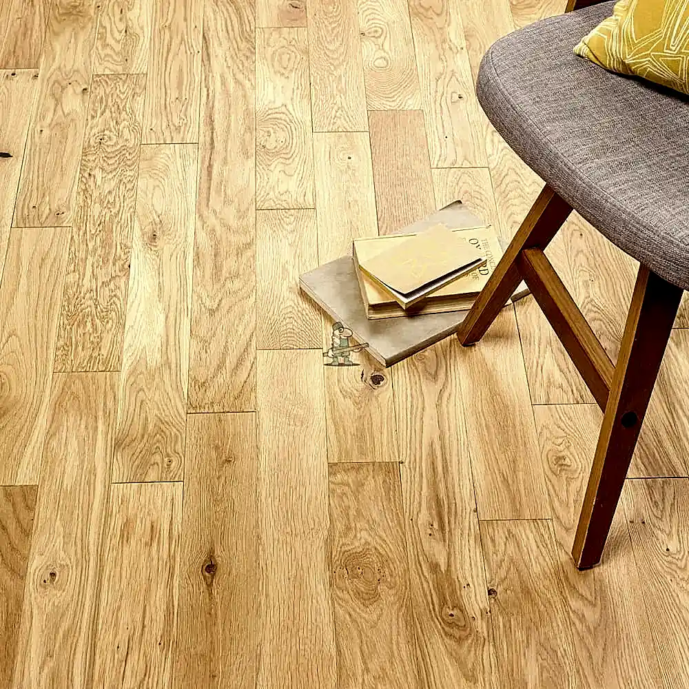 Alabama 90mm Classic Brushed & Oiled Oak Solid Wood Flooring features an 18mm thick solid oak construction, offering exceptional durability and a rich, textured finish. The brushed and oiled surface enhances the natural beauty of the oak, providing a tactile and visually appealing texture that adds warmth and character to any room. Available in lengths ranging from 300mm to 1400mm, this flooring is perfect for creating a seamless and elegant look in both residential and commercial settings.