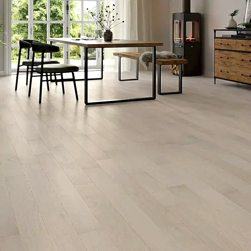 Ideal for brightening up interiors, this engineered wood flooring is compatible with underfloor heating and easy to install, making it a perfect choice for modern homes and commercial spaces. Additionally, this can be sanded and refinished multiple times, allowing it to retain its beauty and functionality for many years.