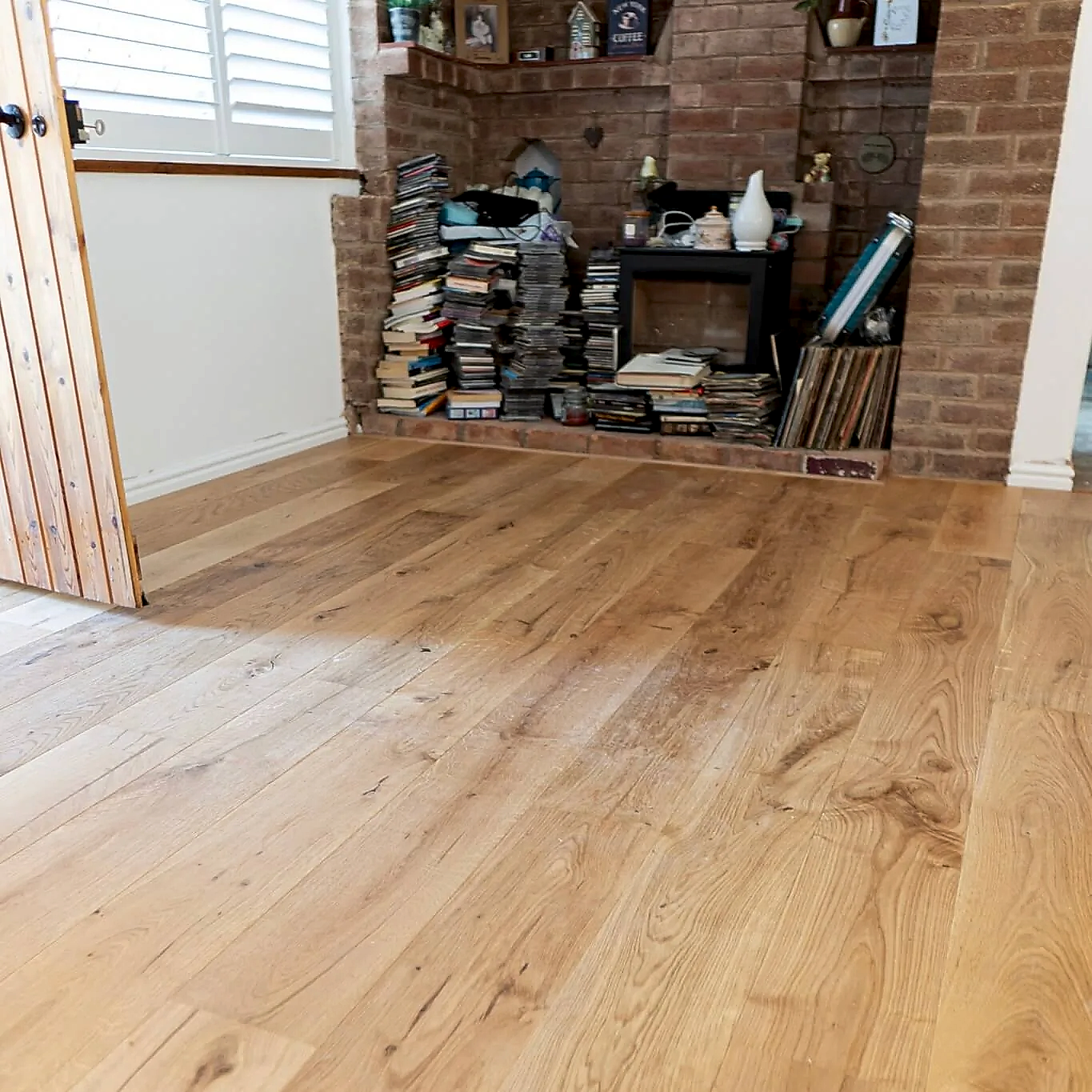 Cambridge Delamere Oak 14/3 x 190mm Natural Brushed Oiled Engineered Wood Flooring comes in 14mm thick, with a 3mm solid oak veneer, providing a durable and resilient flooring option.Its brushed and oiled finish highlights the wood’s rich texture and grain, providing a warm and inviting appearance. This finish not only protects the wood but also adds a tactile quality that enhances the overall aesthetic of the floor.