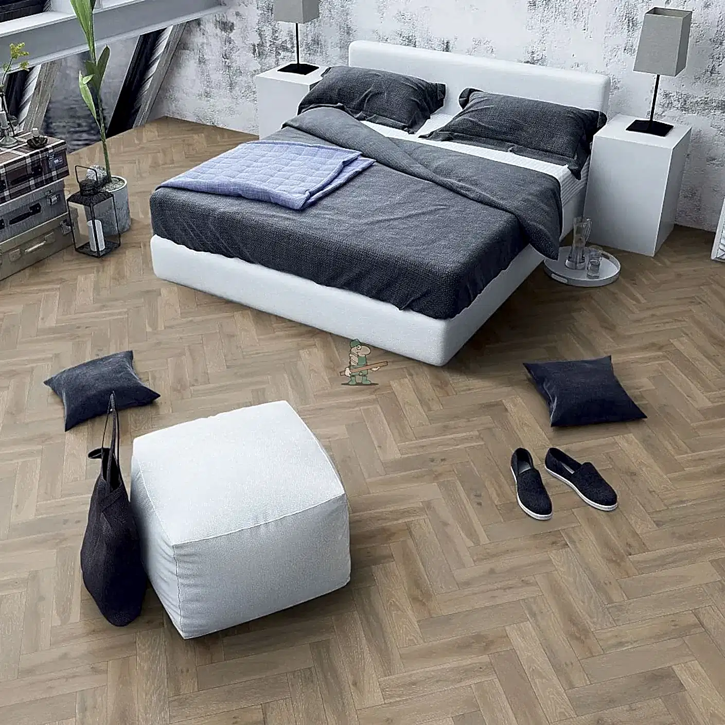 Cloud Grey Oak Heritage Herringbone Engineered Wood Flooring is 15mm thick, with a 4mm solid oak veneer, making it one of our most hardwearing floors, that can be sanded down and re-finished for years to come. Lacquered finish offers protection and aesthetic enhancement, making it popular for those seeking durability, easy maintenance, and a glossy appearance in their spaces.