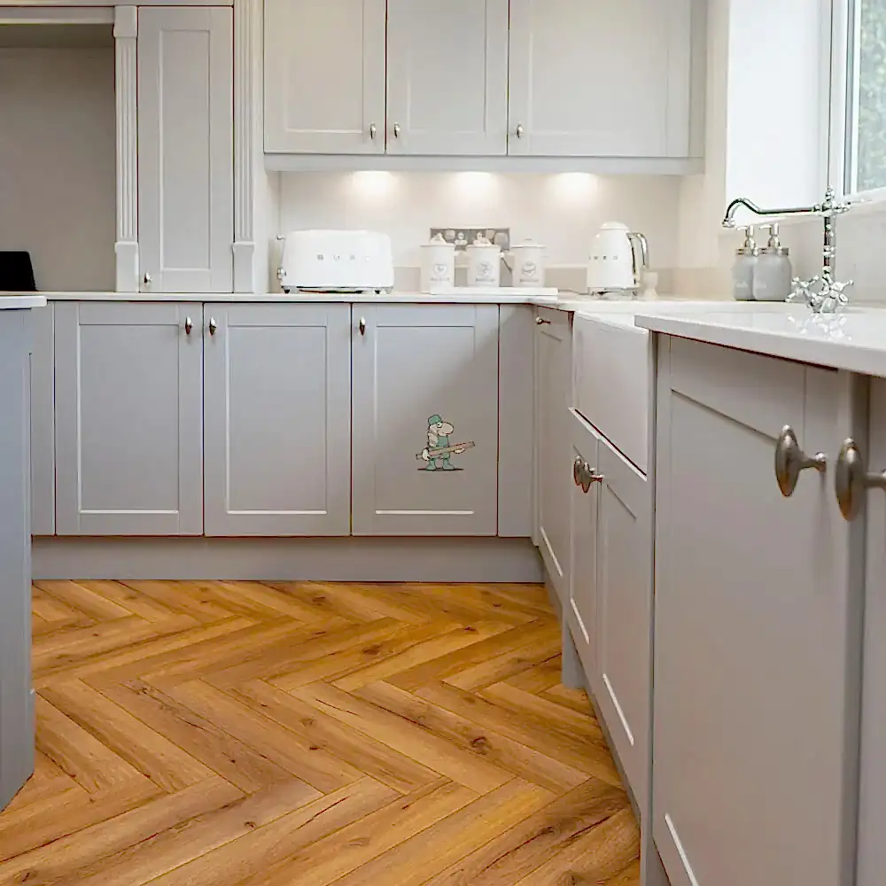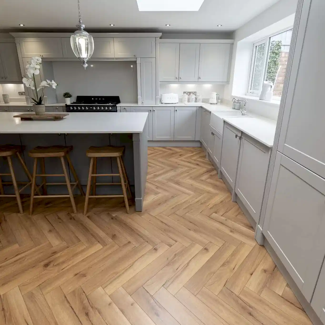 Craft 12mm Regency Oak Herringbone AC5 Laminate Flooring captures the essence of a Scandinavian sentiment, with an astonishing tough water-resistant AC5 HDF core base that is compatible with underfloor heating and suited to high traffic commercial areas. The unique colour tones of this herringbone range bring about an airy / welcoming feel to any space, matching both contemporary and classic interior styles. It’s DIY friendly click system also makes installation a breeze, whether you’re planning a major renovation or a simple update.