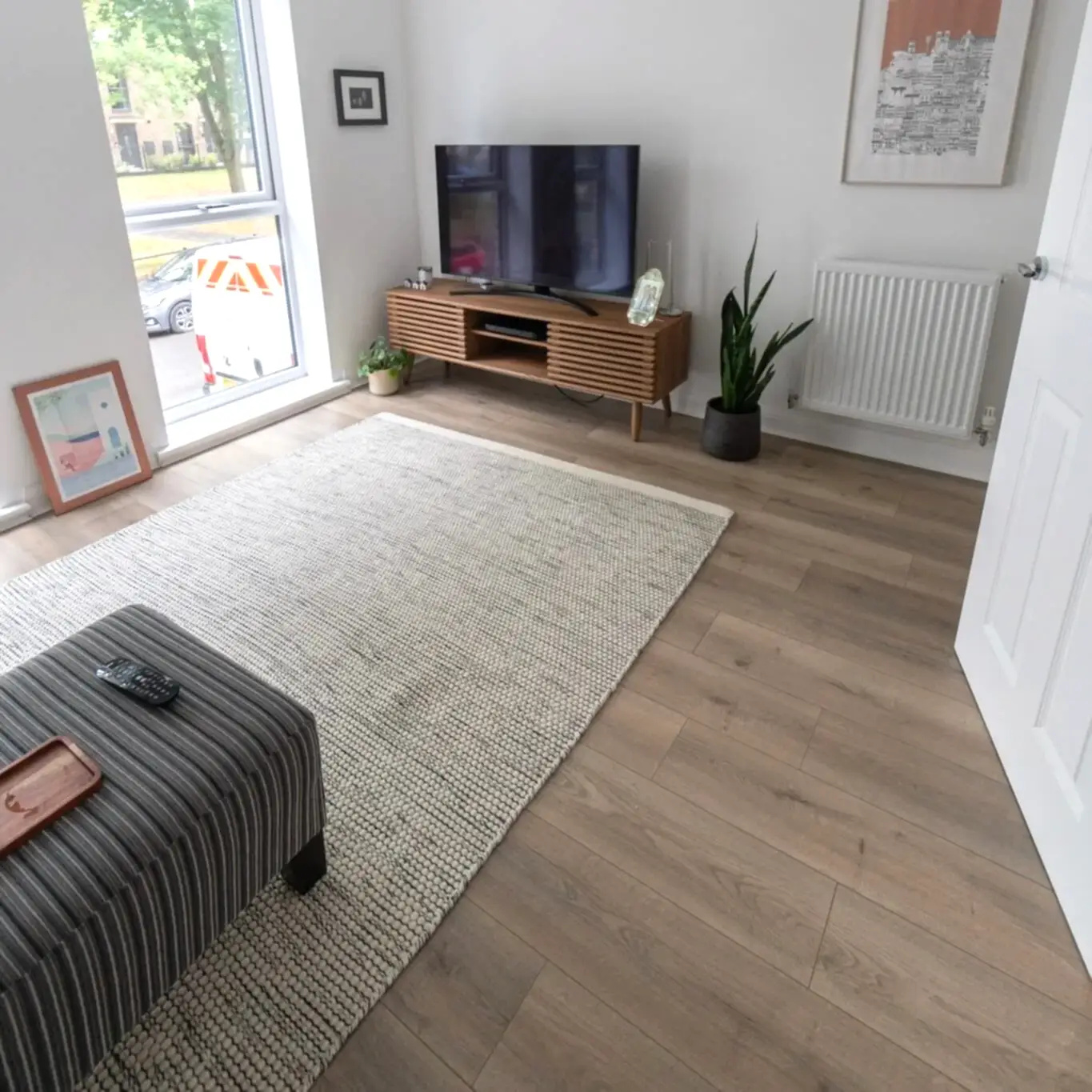 Grey Beige Oak 12mm Classic Laminate Flooring is a rustic toned floor, with the presence of subtle knots, markings and streaks, providing an authentic and contemporary look. The textured and embossed finish to each plank also means that your floor will feel warm and soft on the feet, and adds an element of slip resistance.
