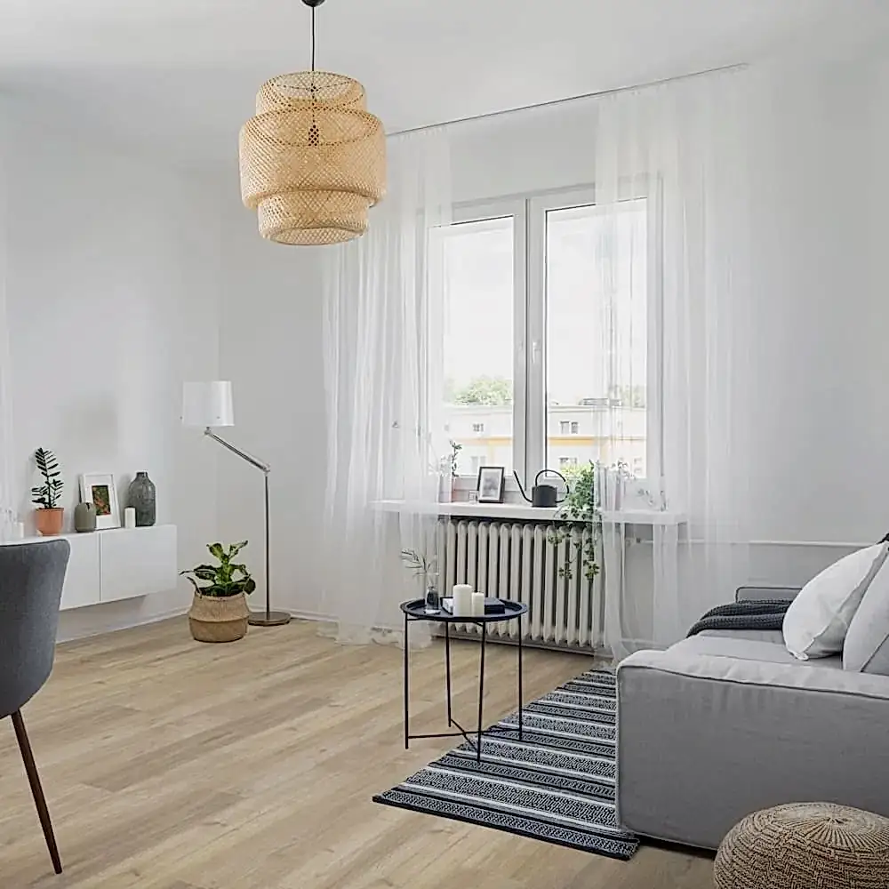 Home Classic 8mm Beige Oak 4V Laminate Flooring is highly durable, making it suitable for both residential and commercial use. Its AC4 rating ensures excellent resistance to wear and impact, while the click-lock installation system simplifies the setup process.