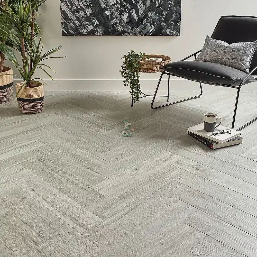 Hydro Pro Herringbone 5mm Arctic Luxury Vinyl Click Flooring features 5mm thick, 126mm wide, and 610mm long planks, providing a robust and elegant flooring solution. The Arctic design offers a crisp and clean look, perfect for brightening up any room with a fresh, modern aesthetic. The luxury vinyl click flooring system ensures easy installation, making it an ideal choice for both DIY enthusiasts and professional installers. The waterproof construction makes it suitable for any area of the home, including kitchens and bathrooms, providing durability and resistance to everyday wear and tear.