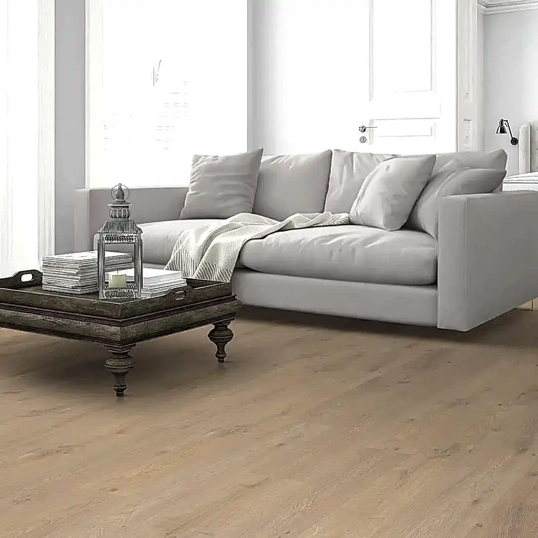 Light Brown Oak 12mm Classic Laminate Flooring is a rustic toned floor, with the presence of subtle knots, markings and streaks, providing an authentic and contemporary look. The textured and embossed finish to each plank also means that your floor will feel warm and soft on the feet, and adds an element of slip resistance.