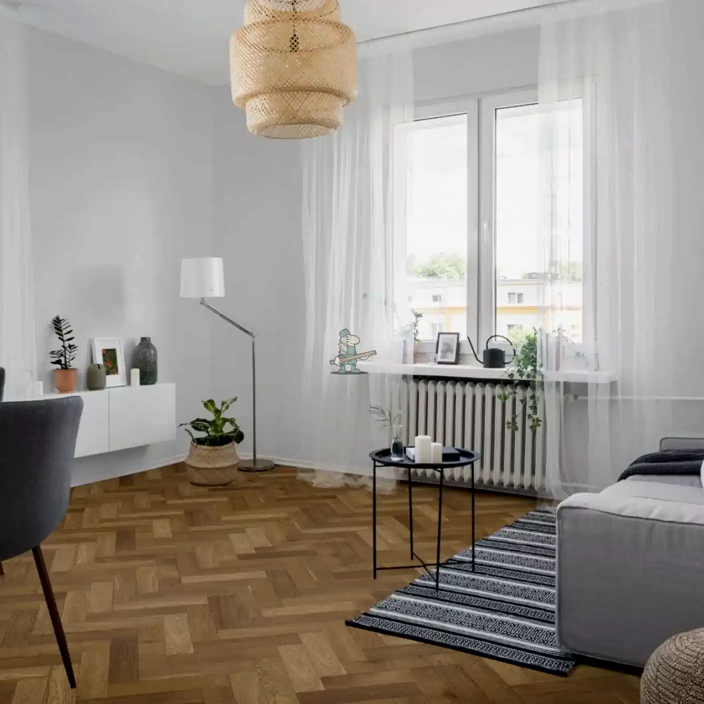 Weathered Smoked Oak Heritage Herringbone Engineered Wood Flooring is 15mm thick, with a 4mm solid oak veneer, making it one of our most hardwearing floors, that can be sanded down and re-finished for years to come. Lacquered finish offers protection and aesthetic enhancement, making it popular for those seeking durability, easy maintenance, and a glossy appearance in their spaces.