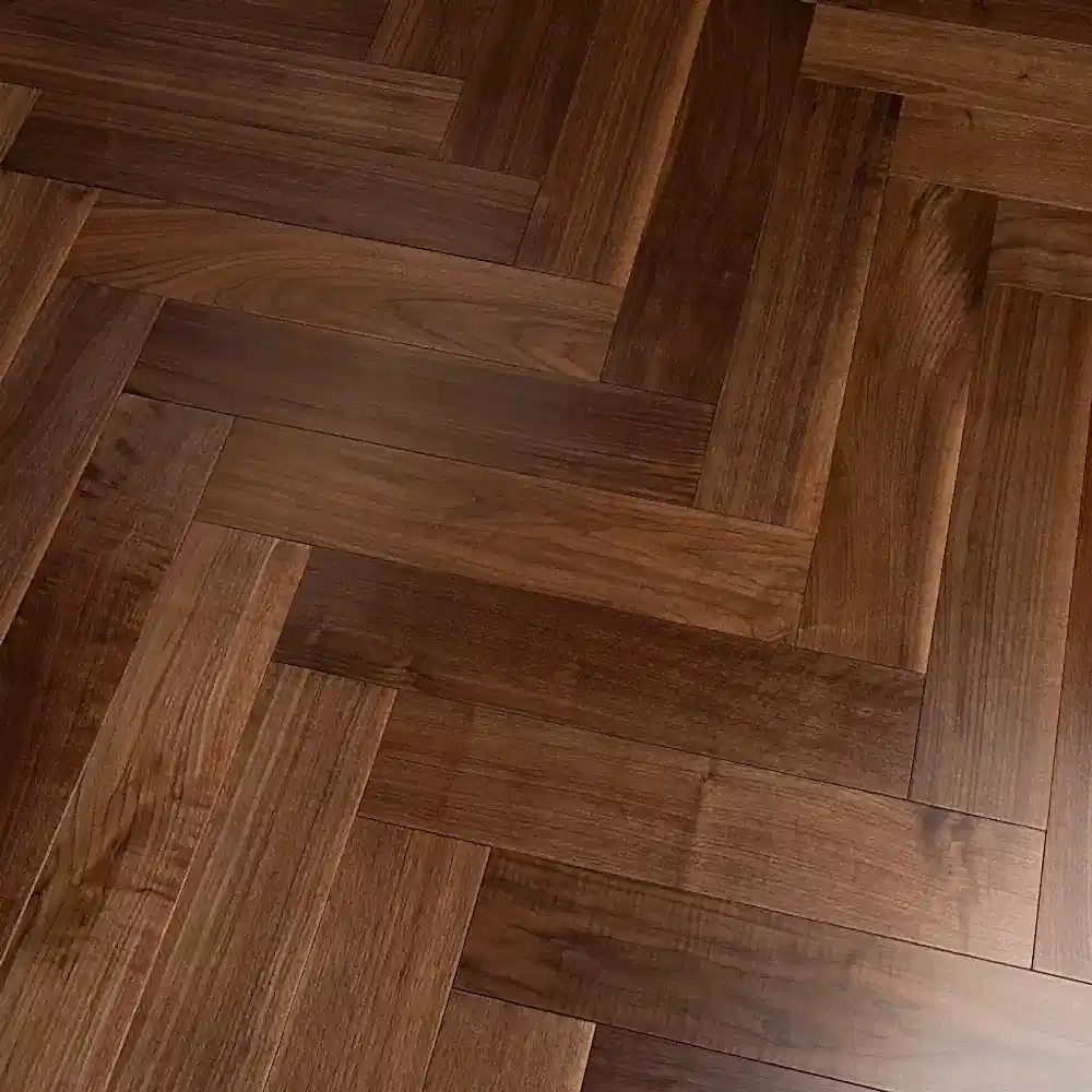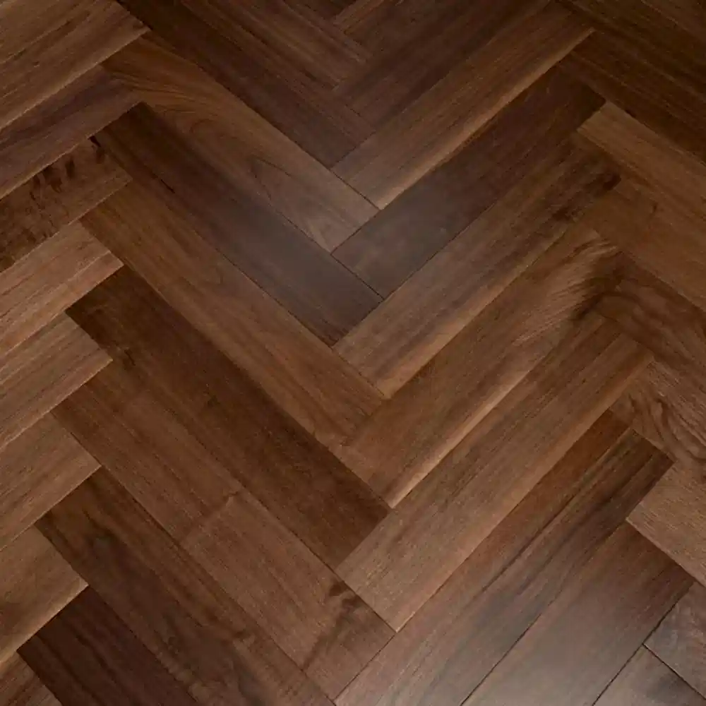 This Nashville 14/3 x 125mm Smooth American Walnut Herringbone Engineered Flooring is 14mm thick, with a 3mm solid American Walnut veneer, providing a durable and sophisticated flooring option. The Smooth American Walnut Herringbone Engineered Wood Flooring offers a rich, warm tone, adding a touch of luxury and elegance to any room. The UV lacquered finish enhances the natural beauty of the walnut, delivering a smooth and glossy surface that offers superior protection against scratches, stains, and UV damage.