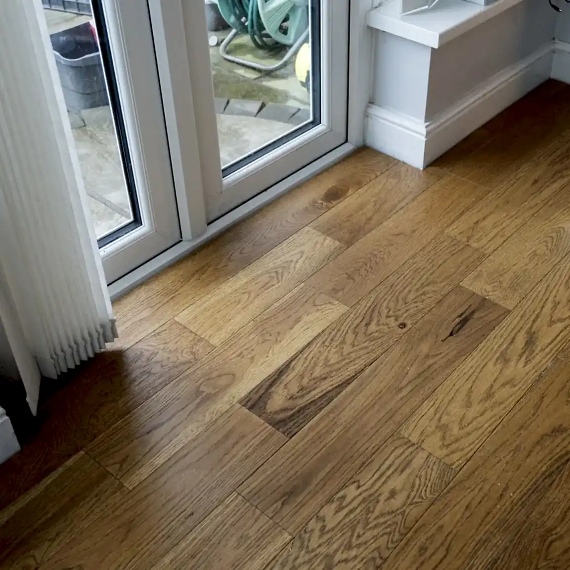 Nature 14/3 x 125mm Golden Wheat Oak Engineered Wood Flooring is 14mm thick, with a 3mm solid oak veneer, ensuring a durable and resilient flooring solution. The 125mm wide Flooring exudes warmth and richness, adding a luxurious and inviting feel to any space. The gold brushed and lacquered finish provides a unique combination of texture and a subtle sheen, highlighting the natural grain and enhancing the wood’s beauty while offering superior protection against everyday wear.