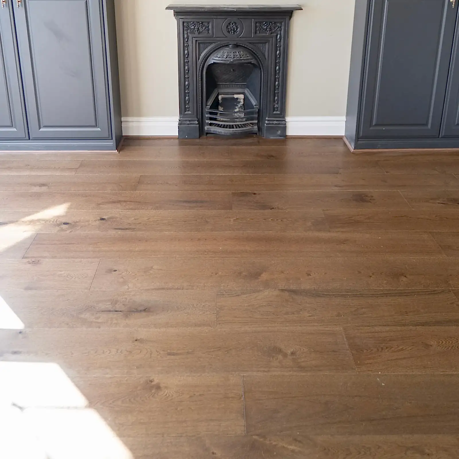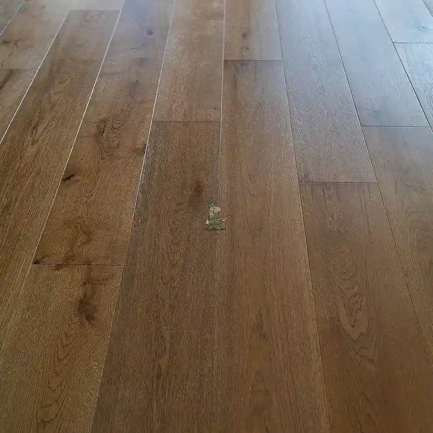 The Brushed Cognac Oak Engineered Wood Flooring adds a rich, warm tone to any room, enhanced by the brushed texture and lacquered finish. This combination provides a visually appealing and protective surface, highlighting the natural beauty of the oak while ensuring it remains resistant to daily wear and tear. Ideal for both contemporary and traditional interiors, this flooring is fully compatible with underfloor heating systems and can be sanded and refinished multiple times, ensuring a lasting elegance.