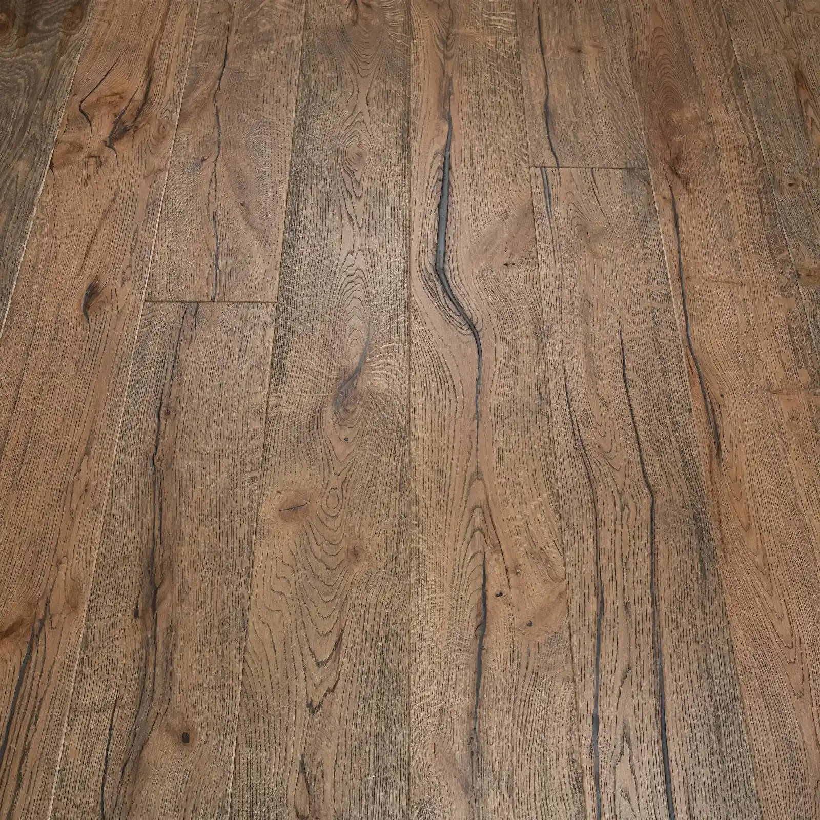 Engineered wood flooring is made up of several layers of wood fused together, typically including a top layer of Solid hardwood and a base layer of plywood or high density fibreboard. This floor has been designed to appear distressed, which provides a rustic and authentic look, which would look great in any living space throughout the home.