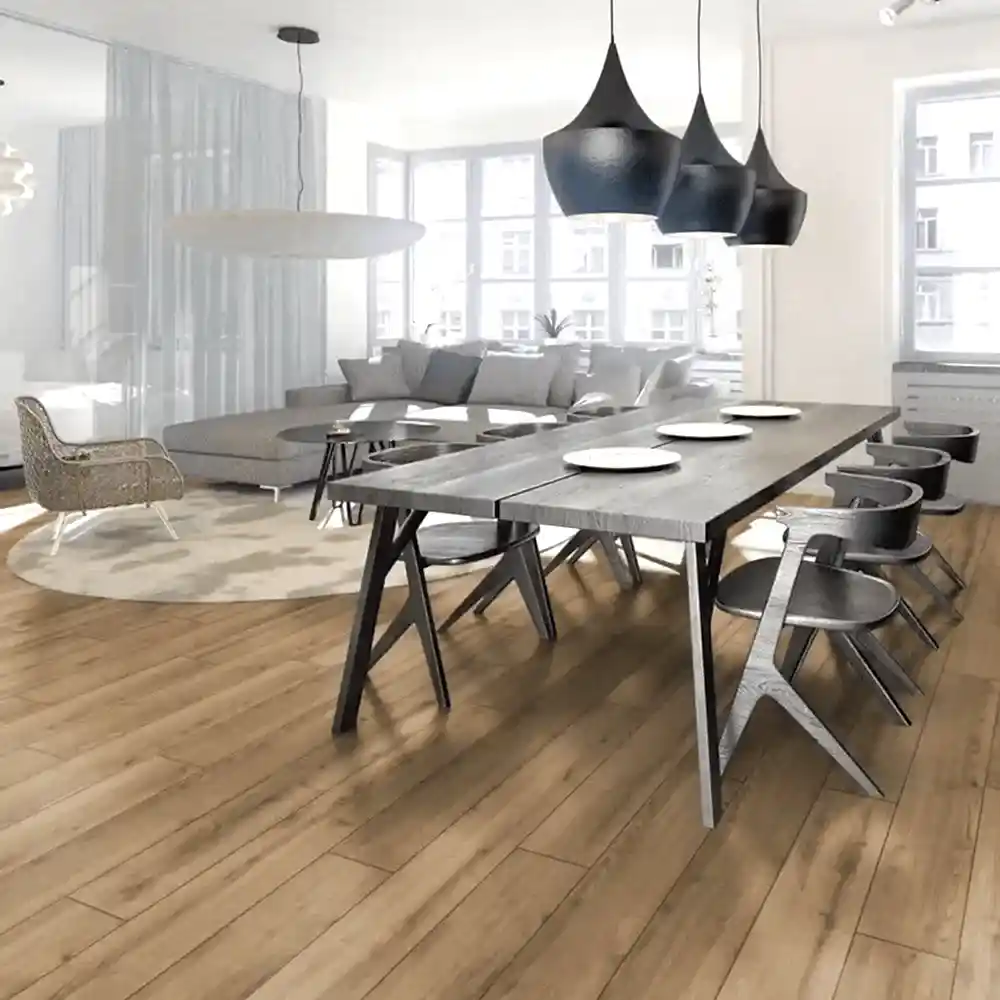 Durability is at the forefront of this laminate flooring, designed to withstand the rigors of everyday life. The easy-to-install click-lock system simplifies the installation process, while the low-maintenance surface makes it ideal for busy households and commercial areas. Fully compatible with underfloor heating, the Lumber Oak laminate offers both beauty and practicality, ensuring your floor remains stylish and resilient for years to come.