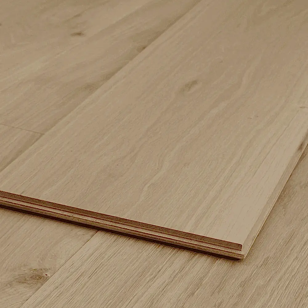 The generous dimensions and unfinished state of the flooring offer endless possibilities for bespoke finishes, allowing you to achieve a unique and tailored look. Engineered for stability and longevity, this flooring is suitable for both residential and commercial spaces, and it is fully compatible with underfloor heating systems. The robust construction ensures that the floor can be sanded and refinished multiple times over its lifetime, providing long-lasting beauty and functionality.