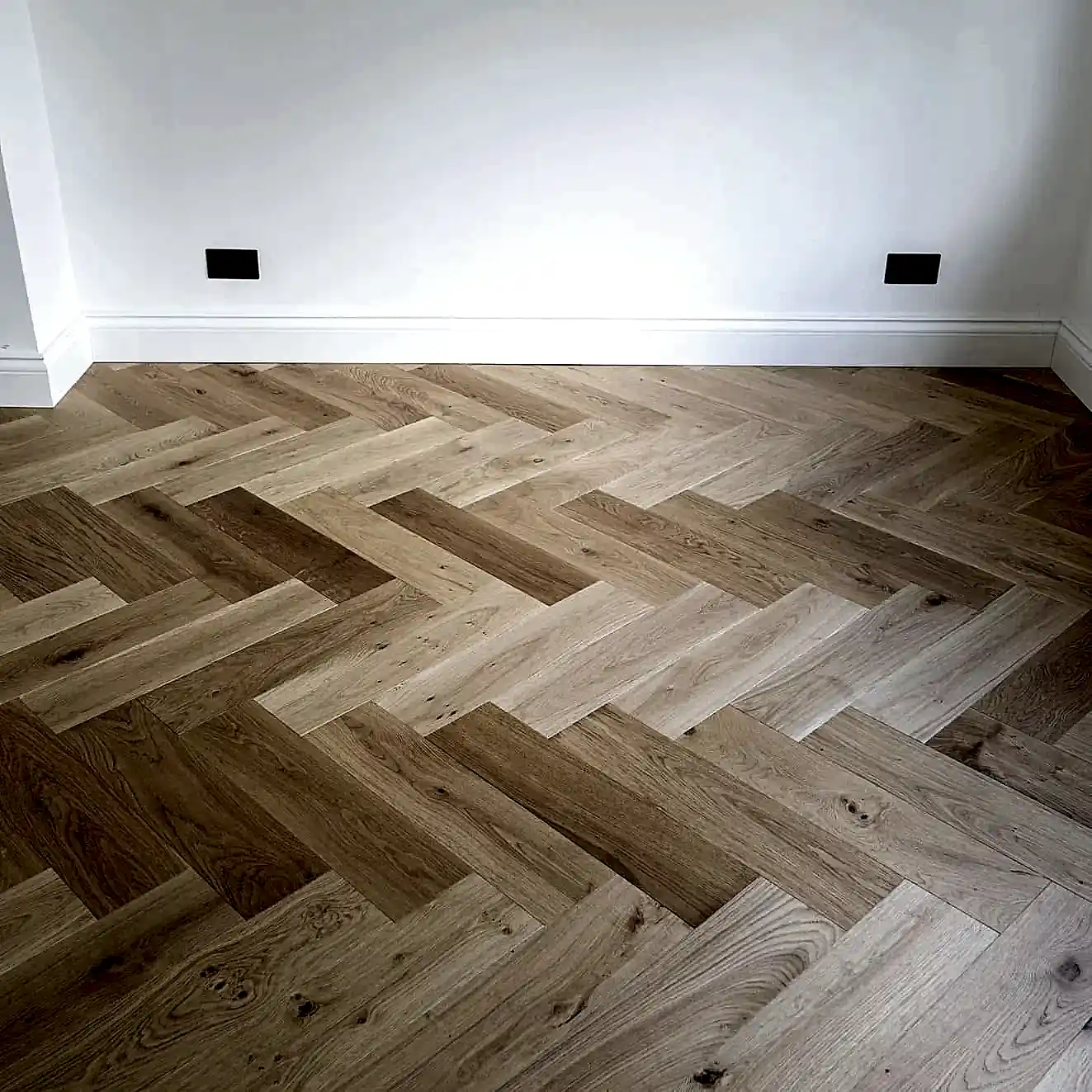 Herringbone is perfect for adding a unique and sophisticated style to any room. The engineered construction ensures stability, longevity, and is fully compatible with underfloor heating systems. The floor can be sanded and refinished multiple times during its lifetime, ensuring it remains beautiful and functional for years to come. There are many samples of engineered wood herringbone flooring available in the store. Contact us to send a sample.
