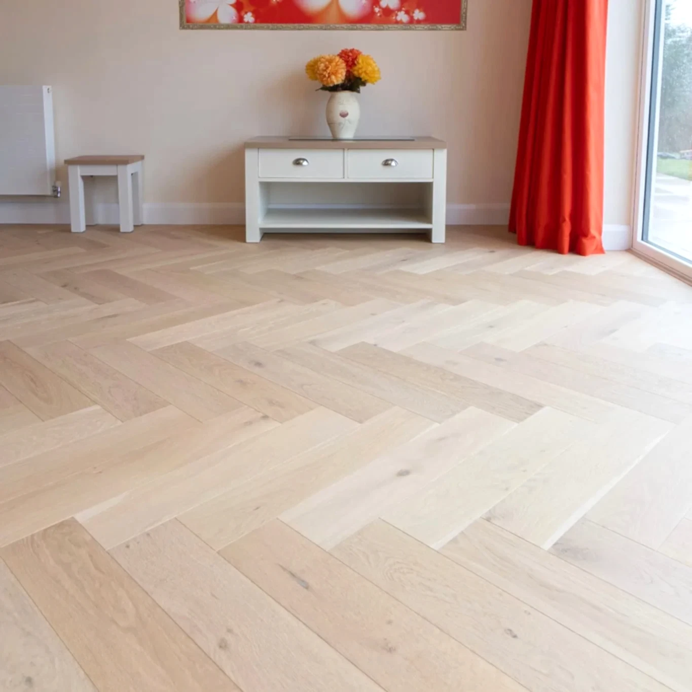 Herringbone is perfect for adding a unique and sophisticated style to any room. The engineered construction ensures stability, longevity, and is fully compatible with underfloor heating systems. The floor can be sanded and refinished multiple times during its lifetime, ensuring it remains beautiful and functional for years to come. There are many samples of engineered wood herringbone flooring available in the store. Contact us to send a sample.