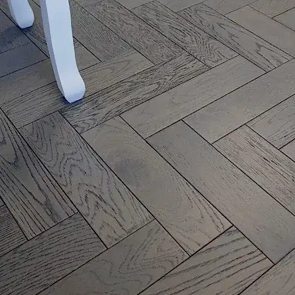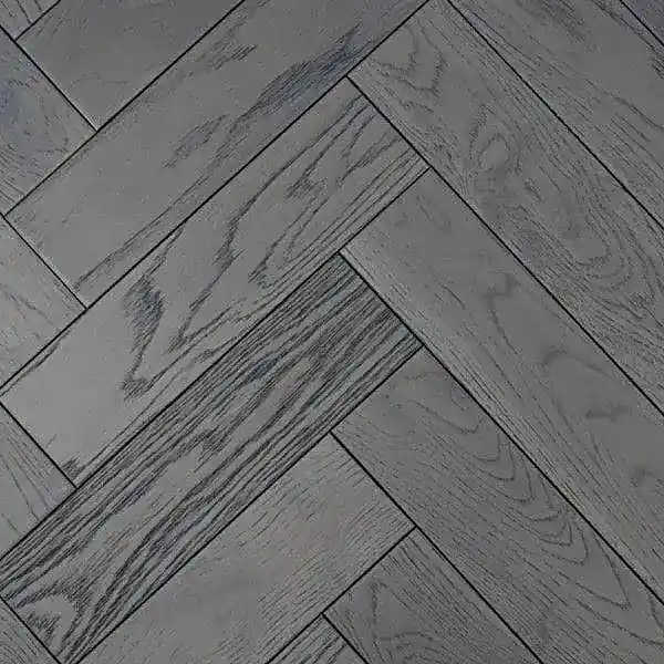 This Riviera 18/3 x 80mm SMALL Charcoal Grey Oak Herringbone Engineered Wood Flooring is 18mm thick, with a 3mm solid oak veneer, resembling the look of old-school small parquet blocks. This Charcoal Grey Oak offers a contemporary and stylish look, perfect for adding a modern touch to any space. The brushed and matt lacquer finish provides a subtle texture and a sleek, matte appearance, enhancing the natural grain and character of the oak while offering superior protection against wear and tear.