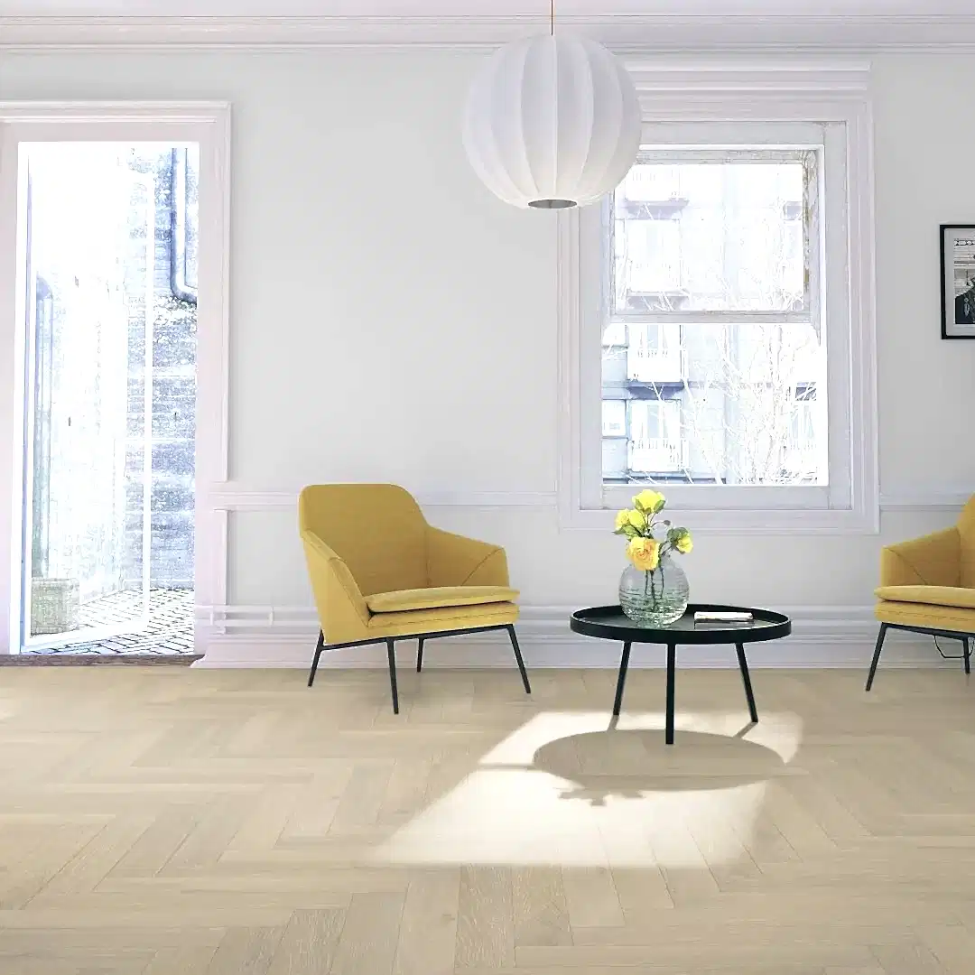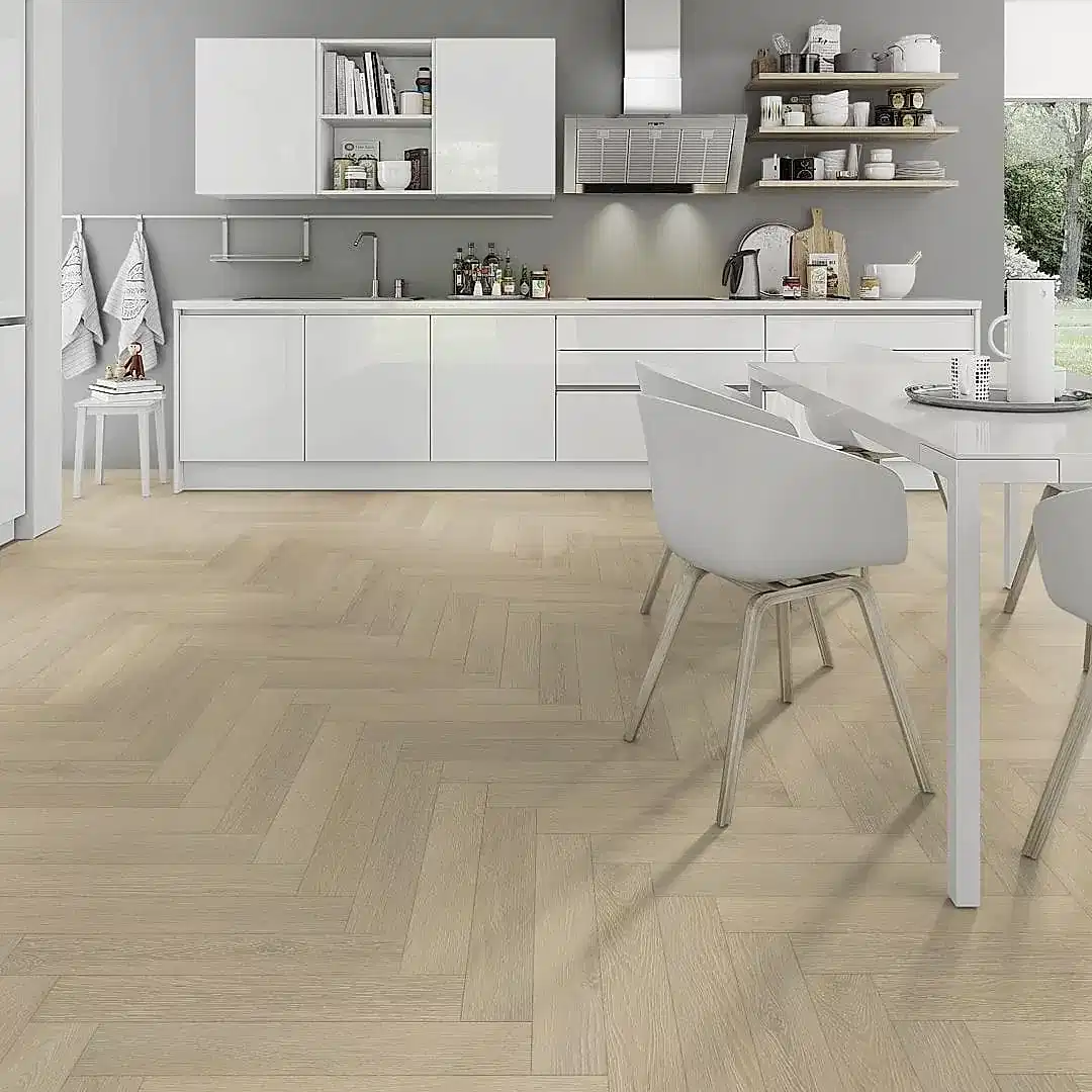 Savannah Oak 12mm Laminate Herringbone Flooring is manufactured to combine the beauty of hardwood, with the durability and resilience of laminate flooring. The planks are 12mm tough and durable, therefore more than capable of handling the demands of a busy, fast-paced family home.